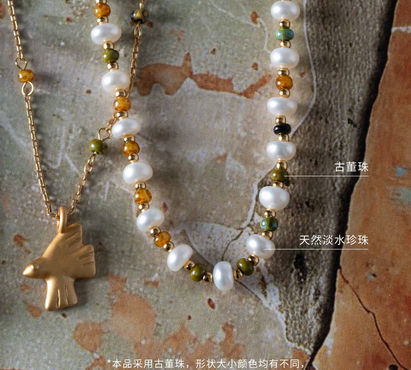 Stray Birds / Pearl and Vintage Bead Necklace